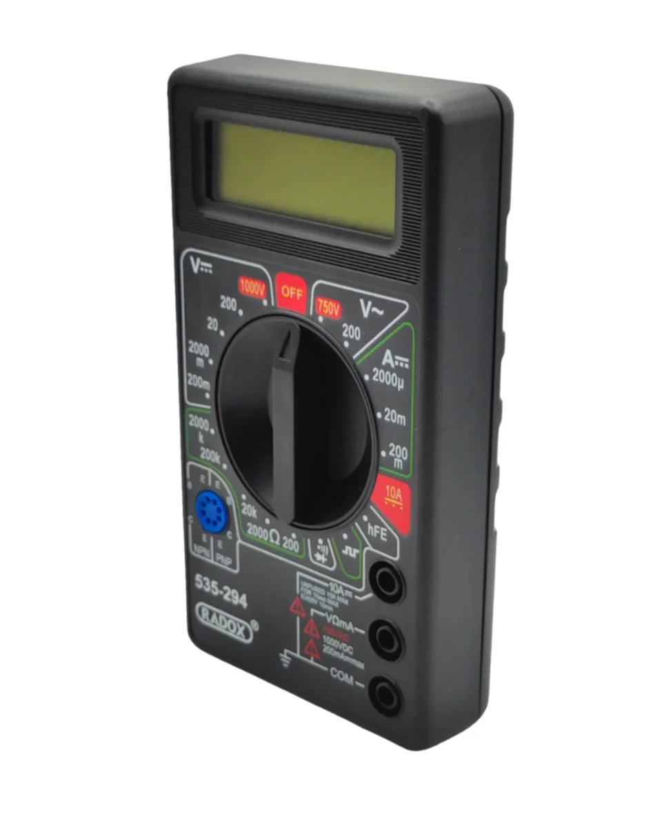 - Ideal para uso domestico o escolar, capaz de medir Voltaje en CC, Voltaje en CA, Intensidad de CC, Resistencia, Transistores, Diodos y Continuidad audible
