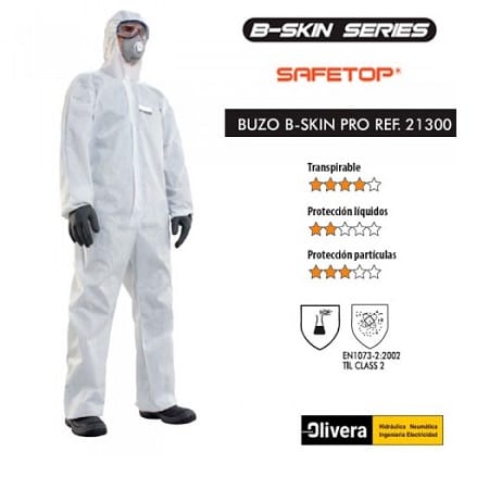 – Buzo químico desechable resistente al polvo y a salpicaduras de líquidos.