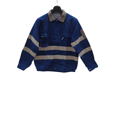 - Chaqueta con colores de contraste fabricada con tejido 100% algodón de 270 gr/m2. 5 bolsillos. Mangas ranglán limitadas por ribete del color de contraste. Doble tapeta. Color negro con contrastes en gris.