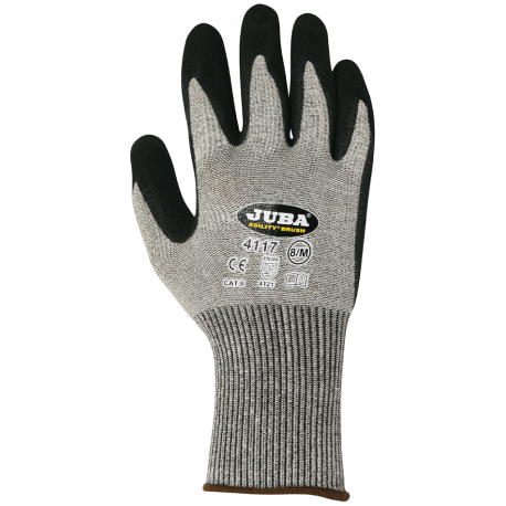 Guante de algodón / Elastano con recubrimiento de nitrilo tipo arenoso en palma.