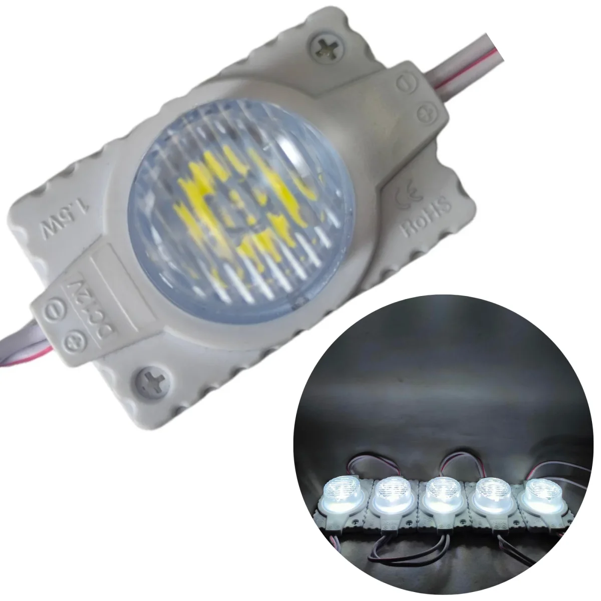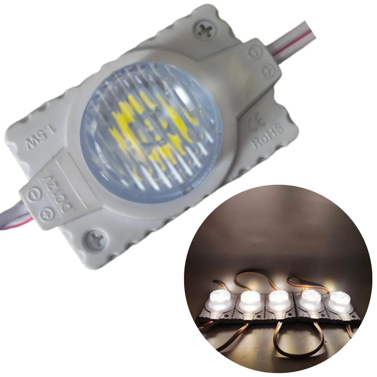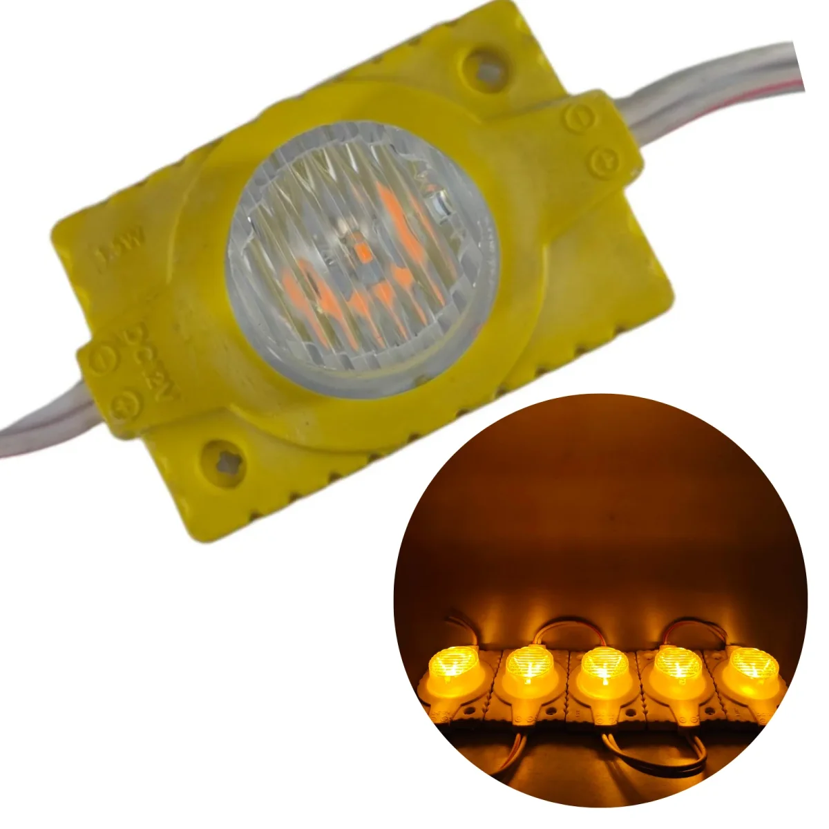 Estos módulos cuentan con cables por ambos lados, lo cual permite una conexión hacia la fuente de alimentación y una conexión hacia otro modulo para generar una conexión en serie y así varios módulos enciendan con la misma fuente.