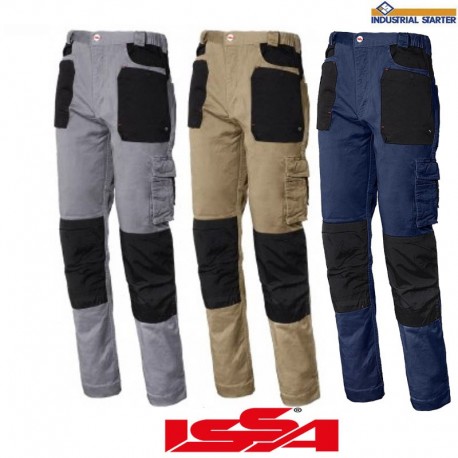 Pantalón elástico con elástico en cintura, bolsillo lateral y porta metro, rodillas reforzadas con tejido impermeable donde se pueden poner rodilleras.